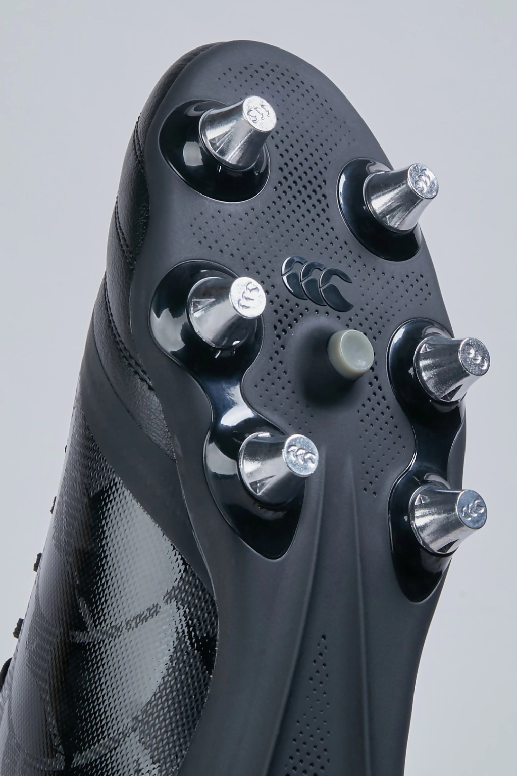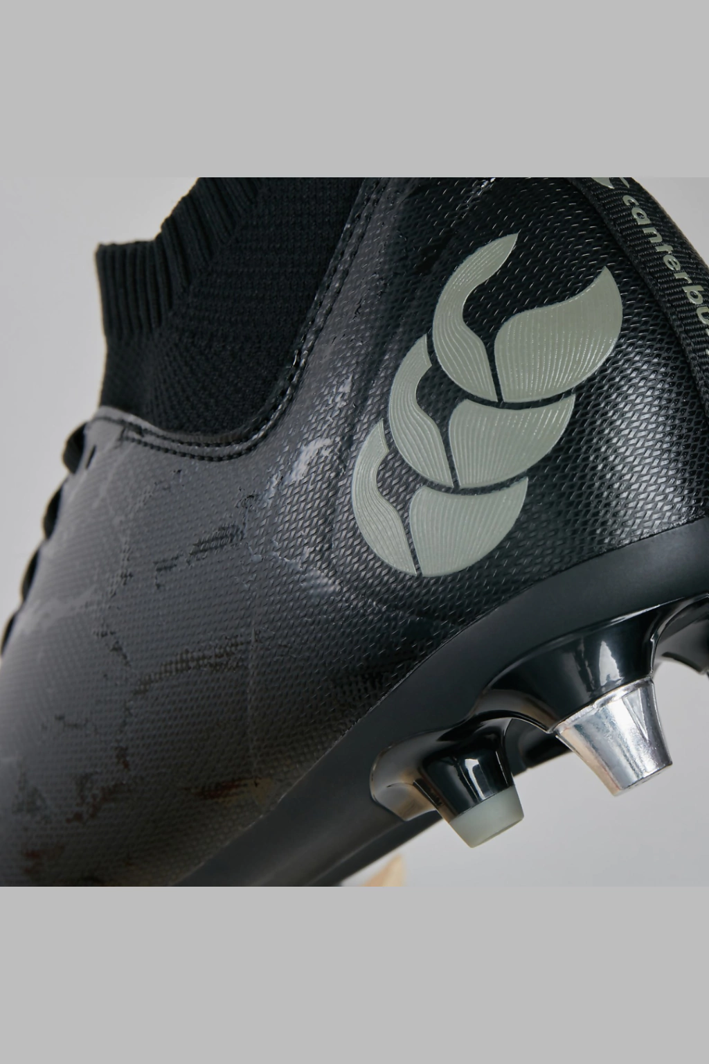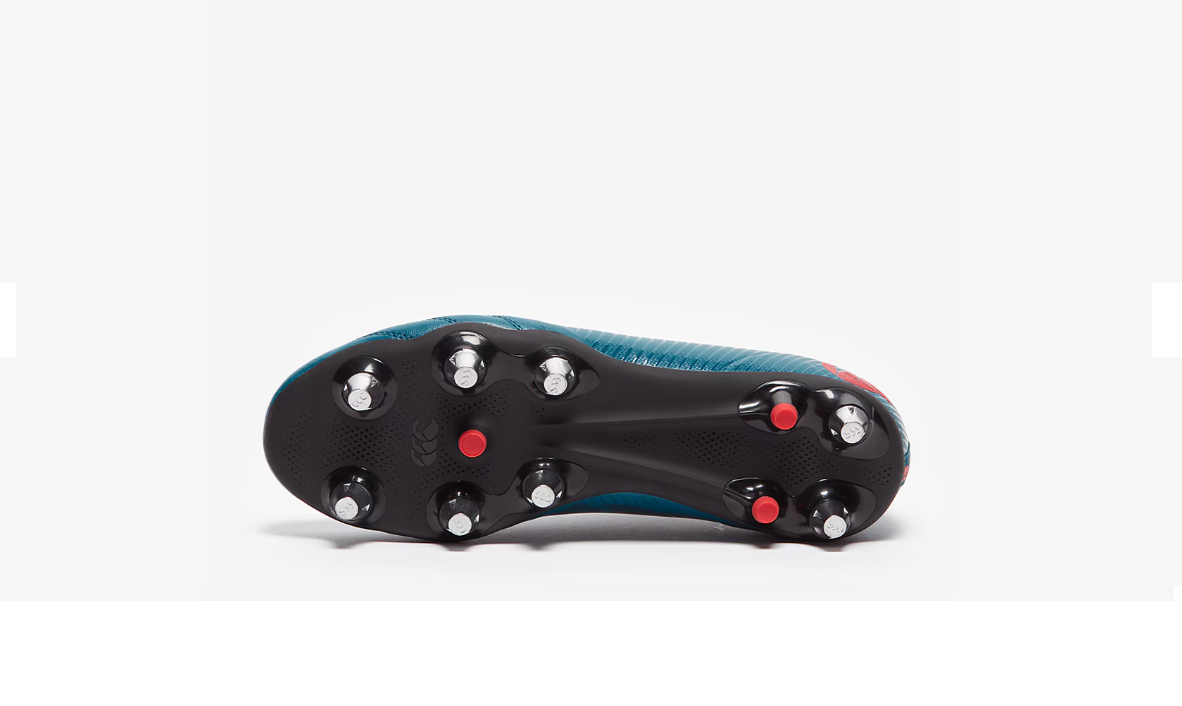 Botas de rugby para terreno blando Stampede 3.0 Plus de Canterbury diseñadas pensando en los delanteros con una parte superior duradera y refuerzo en la puntera. Con un ajuste seguro similar al de un calcetín, una construcción de cuello y lengüeta de punto y un forro de microfibra transpirable que facilita su colocación y permite que sus pies respiren durante el juego. - Hay una parte superior de PU resistente a rayones con una puntera reforzada con cuero de PU para mayor protección. La suela de TPU incluye tacos metálicos extraíbles de 8 x 13 mm.